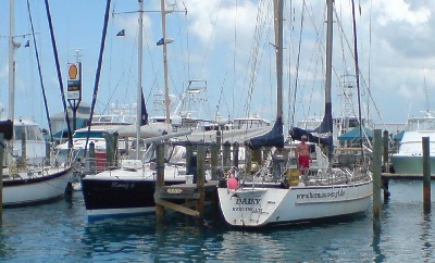 Zwischenstation in St. Thomas. US-amerikanisches Gebiet wie Puerto Rico. Friedlich liegt die DAISY an einer der Bojen des Yachtclubs vor Charlotte-Amalie. Rob, ein gemütlicher Grauschopf, der auf dem benachbarten Taiwanklipper lebt, kassiert in der Abendstunde 30 USD und gibt eine Menge Tipps, wie man den Abend an Land verbringen könnte. Aber ohne Einklarierung? I never saw you. Am nächsten Morgen landen und starten Wasserflugzeuge in dichter Folge direkt neben der DAISY. Ein Linienverkehr offenbar. Der Beamte von der Immigration hat dann auch einen Vorschlag. "Take the ferry to BVI, come back with the next ferry and a visum. I have never seen you and your yacht." Kostenpunkt 50 USD pro Person plus ein verlorener Tag. Die Entscheidung fällt leicht: Dann machen wir eben einen Bogen um die US-Virgin-Islands.